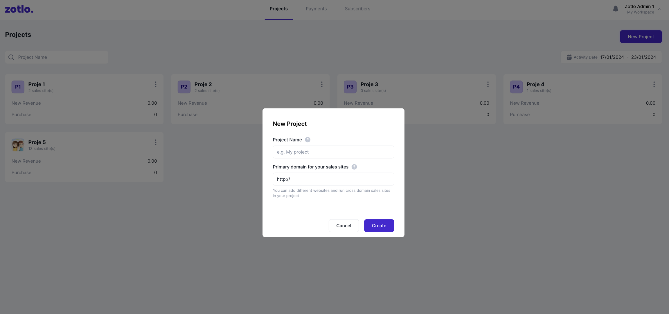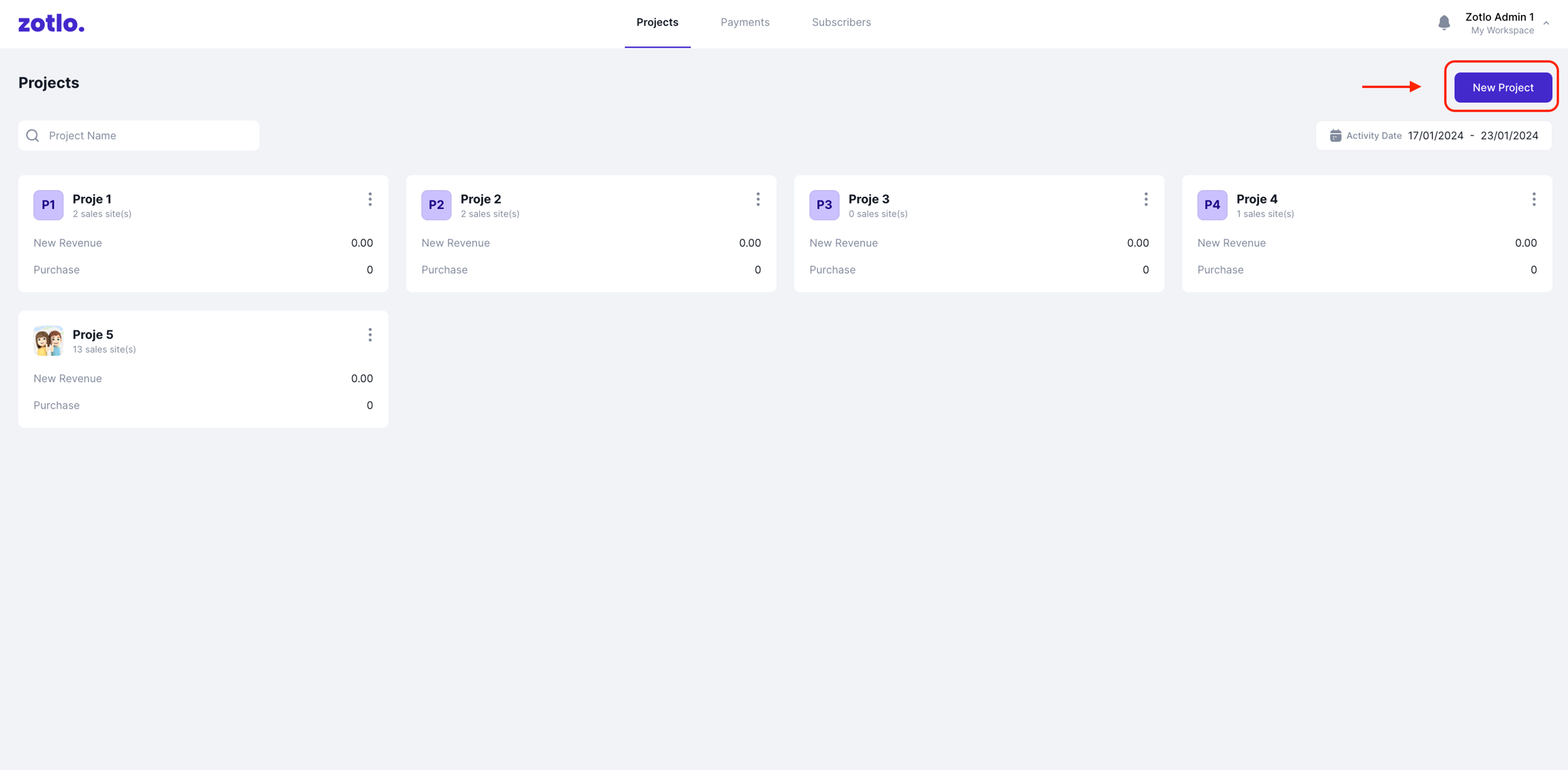 Zotlo'da satışını yapacağız uygulama, ürün ya da servisleriniz birer projedir. Projelerinizi Zotlo panelde Projeler menüsünden yönetebilirsiniz.