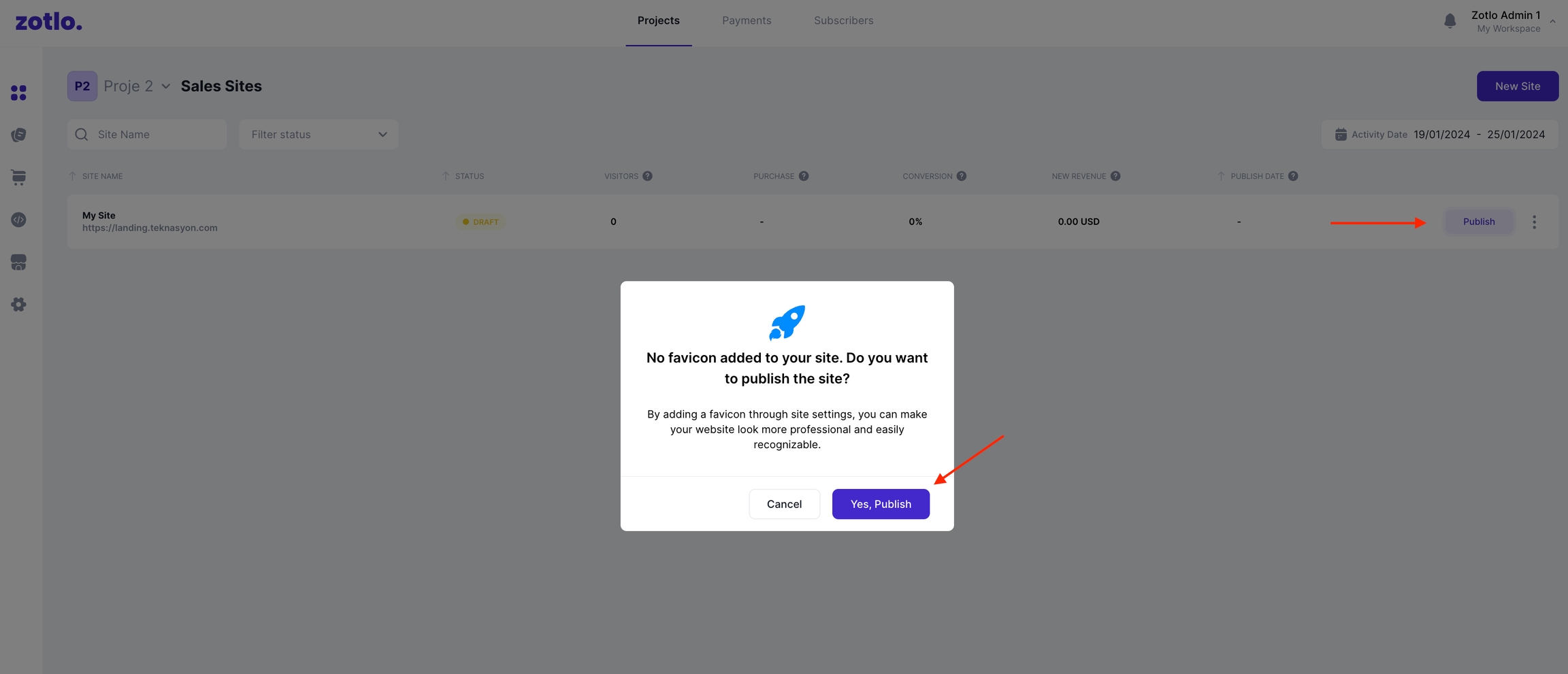 Satış sitenizi etkinleştirmek için, "Satış Siteleri" sayfasına giderek ilgili sitenin yanında bulunan "Yayınla" butonuna tıklamanız gerekmektedir. Bu adımı tamamladıktan sonra, satış siteniz internette aktif hale gelecektir.